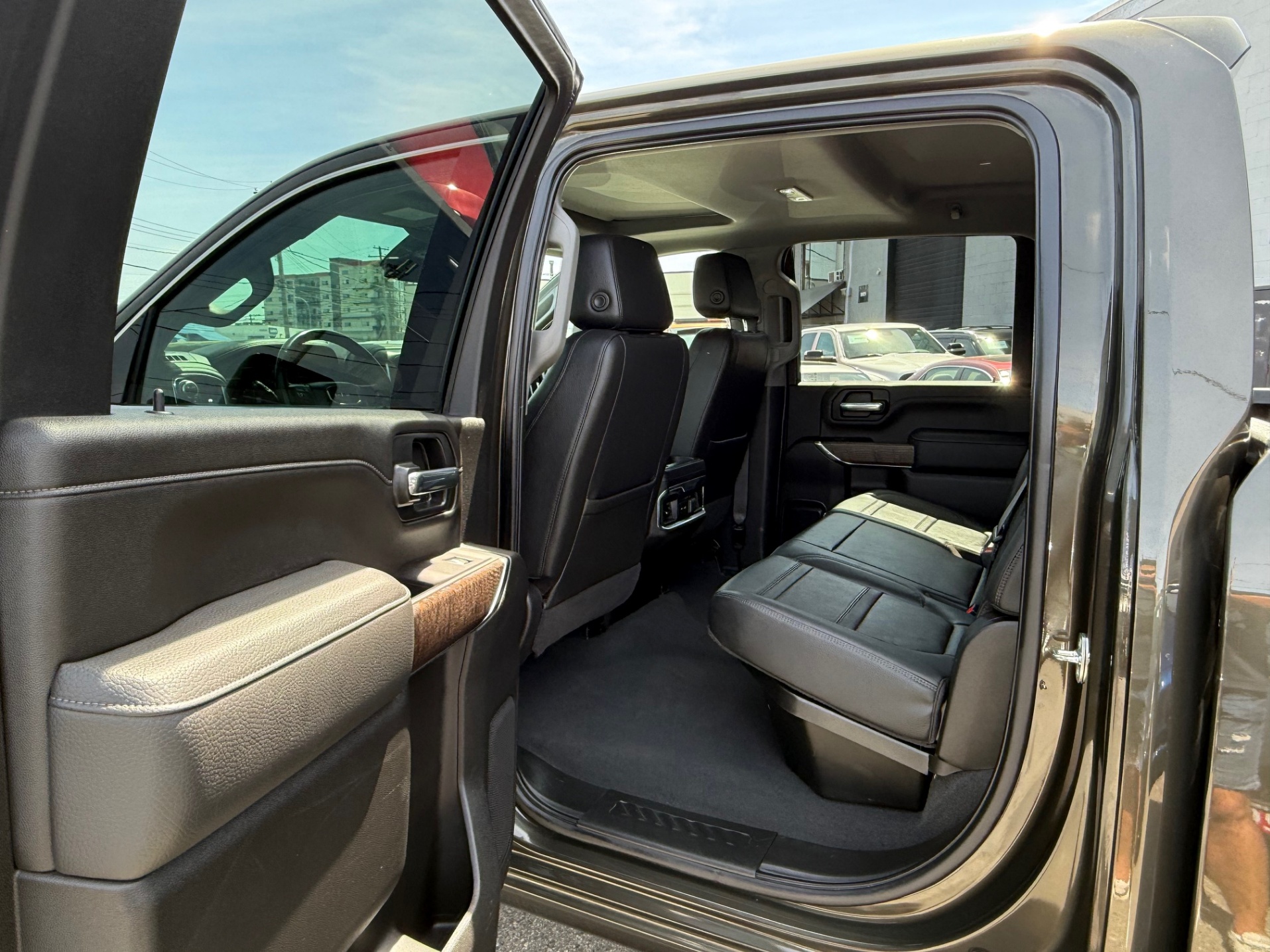 Seat, Up-level Rear with Storage Package, 60/40 folding bench for Crew Cab models includes full-length bench seat, seatback storage on left and right side, centre fold out armrest with 2 cupholders, full cab width underseat storage, (includes child seat top tether anchor) (Rear seat features leather seating surfaces.)